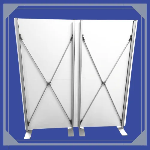 可変式パネルスタンドです。現場でのサイズ調整がしやすく、記者会見・展示会・店頭演出などバックパネルや屋内イベントでのブース設営に最適です。