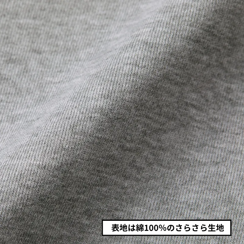 10オンスの厚さと伸縮性・吸水性のある裏パイル(裏毛)仕様の裏地