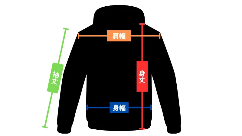 ビジプリで取り扱うパーカーサイズ、並びにその他詳細は以下の通りです。