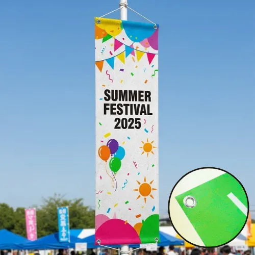 高い耐候性と発色の良さを活かし、屋外イベントや公共施設での掲出に最適です。
