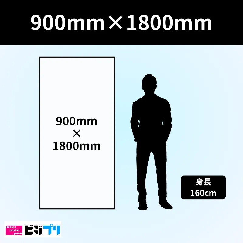 900mm×1800mmサイズのメリットは、等身大を超える迫力があり、強い集客効果を発揮できるところです。