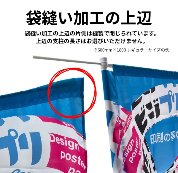【袋縫い】(棒袋加工)のぼり (セイルのぼり)オプション