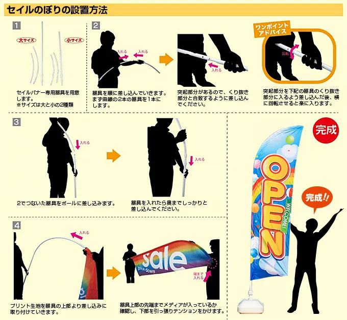 ・セイルのぼりの設置には専用のポールが別途必要となりますのでご注意ください。