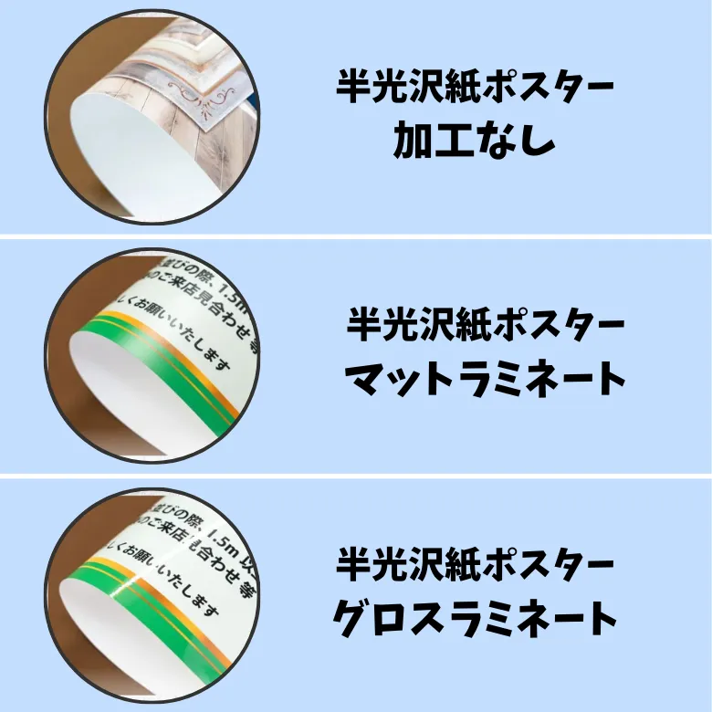 なおラミネート加工をした場合、表面は水濡れに強くなり、耐久性が向上します。