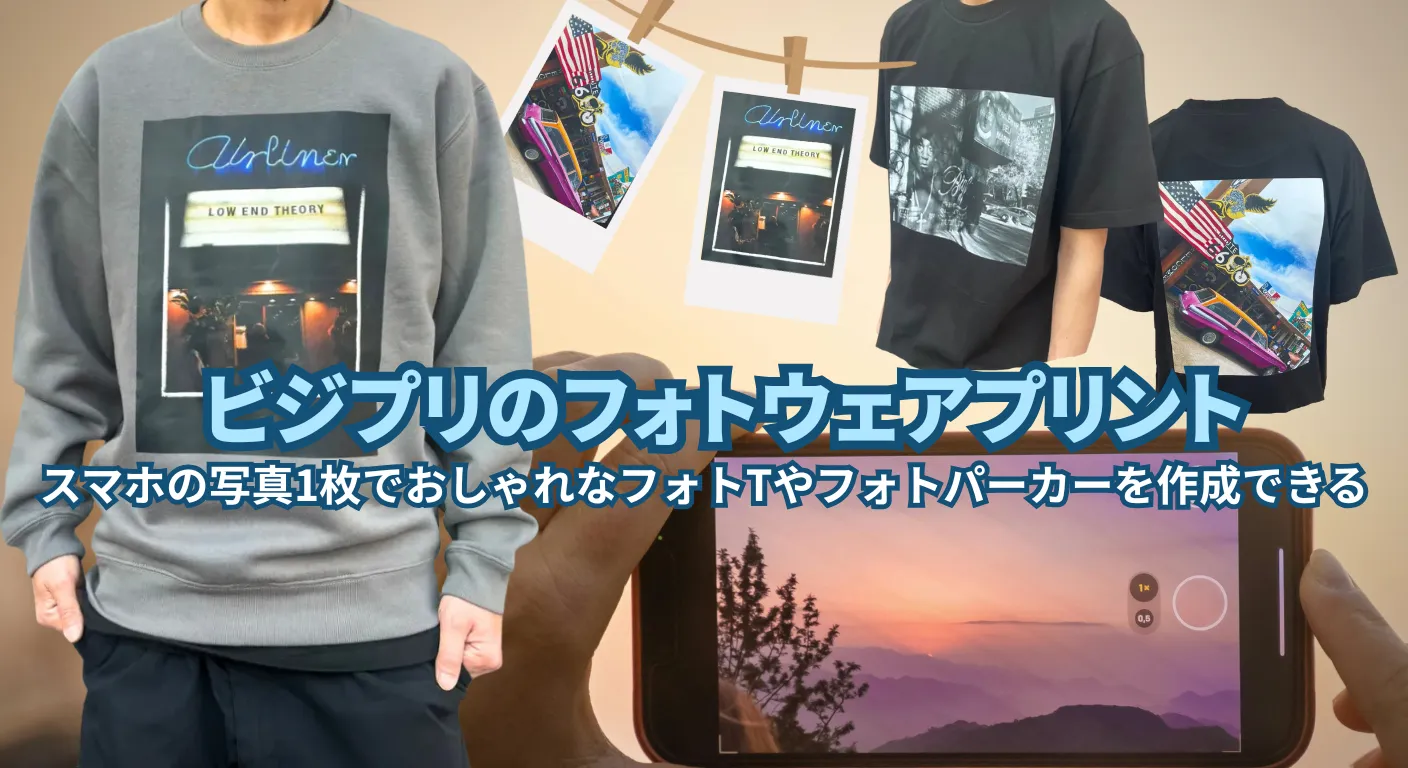 ビジプリのフォトウェア印刷なら、おしゃれなフォトTシャツやフォトパーカーをスマホやデジカメの写真をそのまま送るだけで簡単に作成できます。