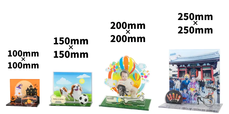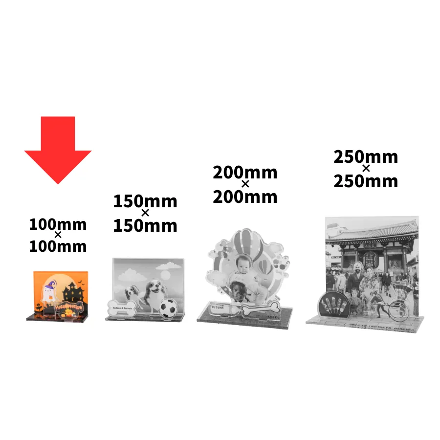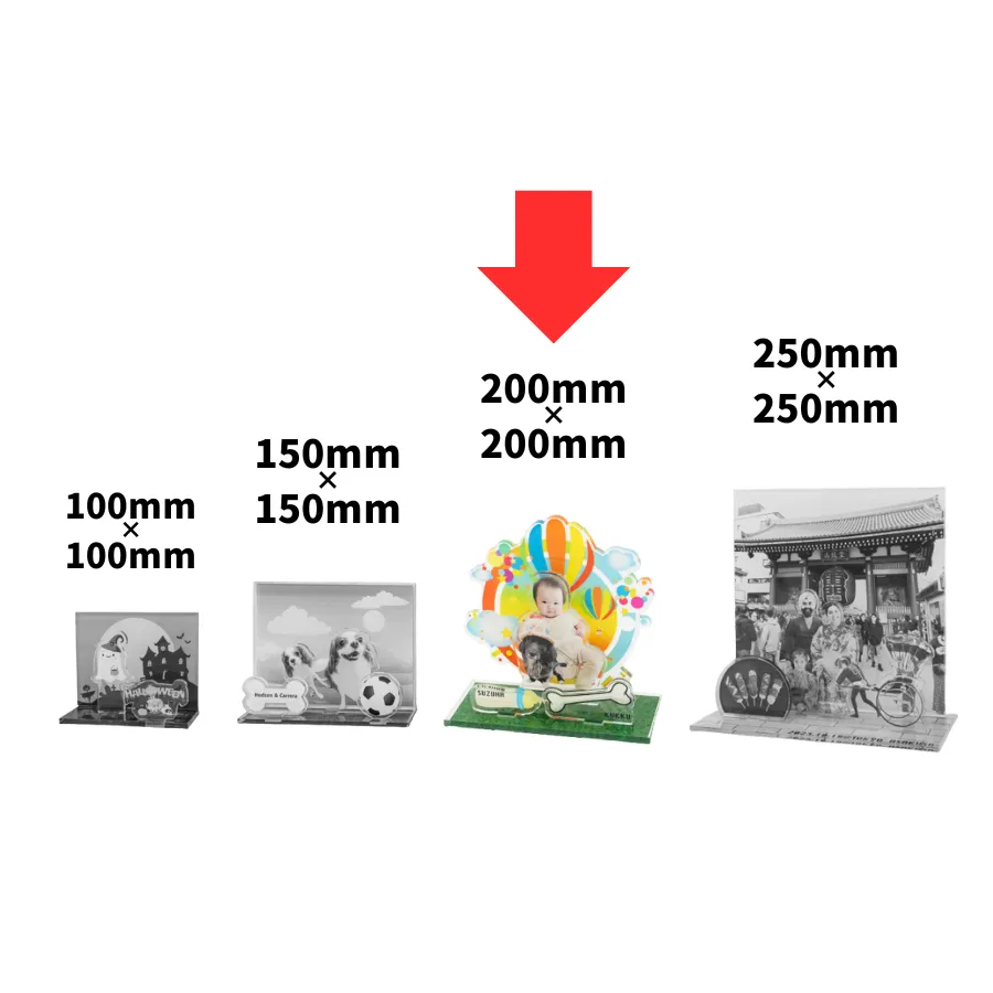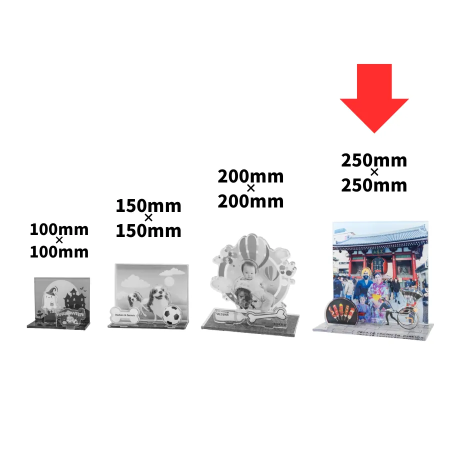 制作サイズにより、背景と台座のサイズは変わってきますので、以下にてご確認の上、ご注文ください。