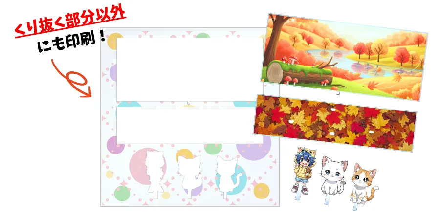 ビジプリのアクリルジオラマとは、各種サイズのアクリル板に印刷したいパーツを自由に配置し、