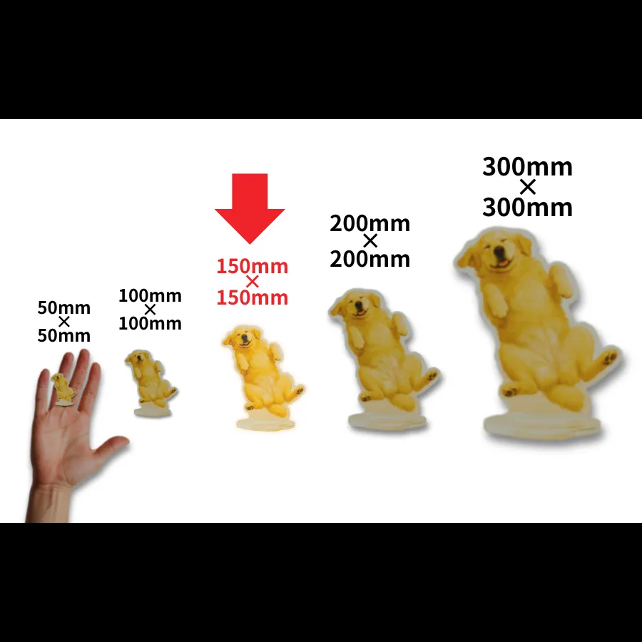 150mm×150mmサイズのアクリルスタンドは、ちょうど手のひら程のサイズになります。