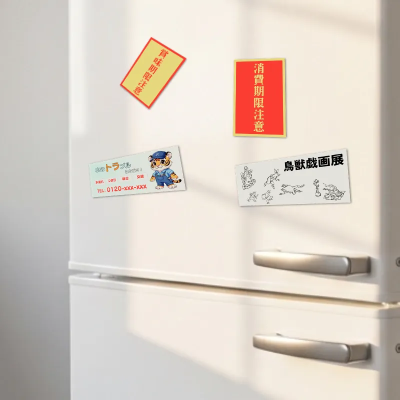 冷蔵庫に家族へのメッセージを貼ったり、ホワイトボードにタスク管理表を固定したりと、さまざまなシーンで活用できます。アイデア次第ではマグネットステッカーなどとして幅広い用途でご利用いただけます。