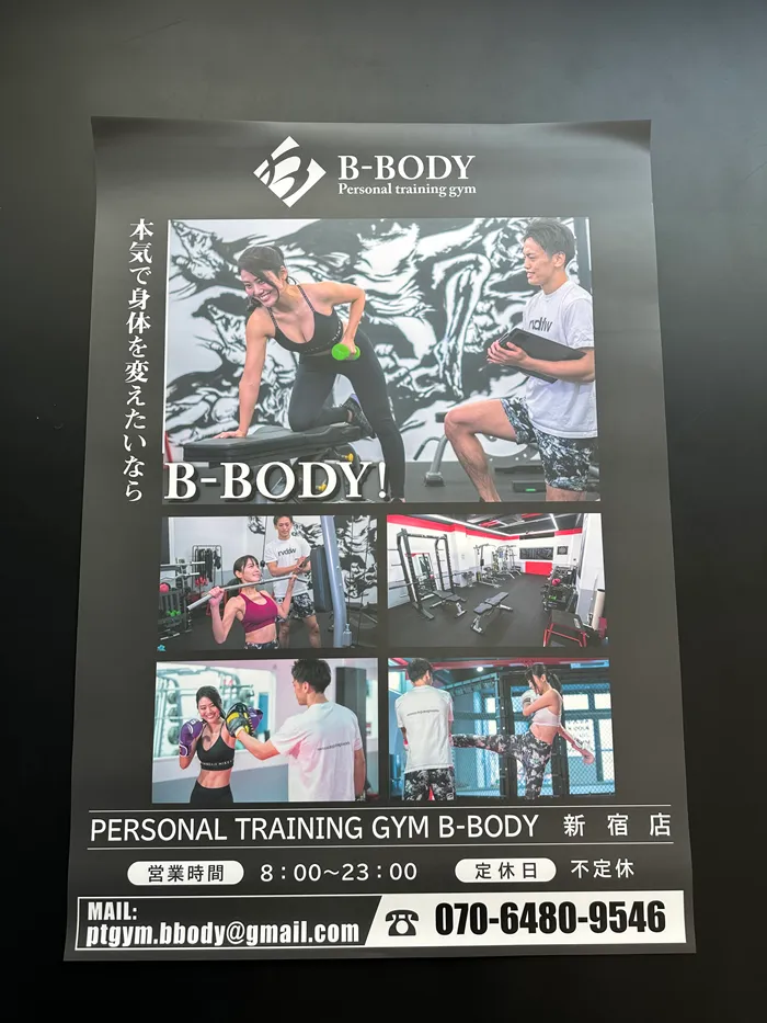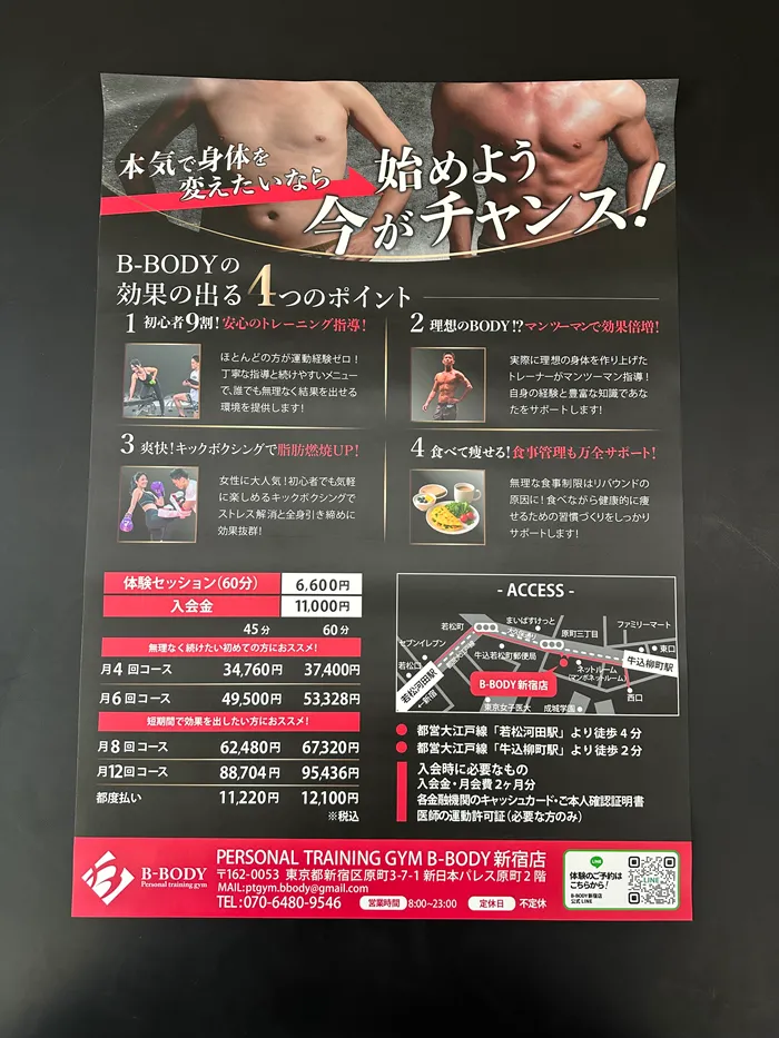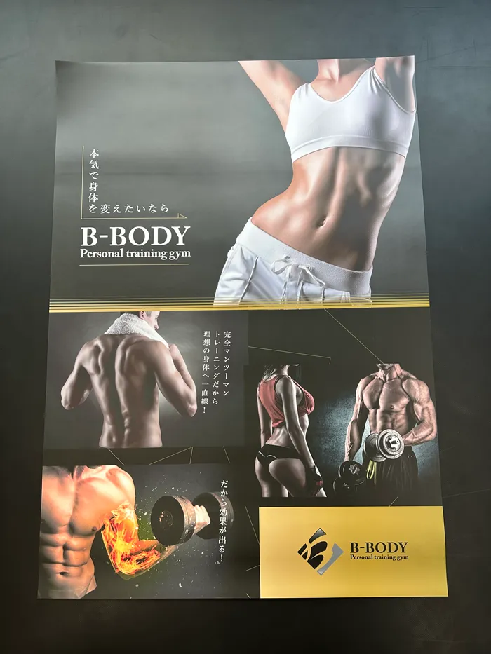 発色も鮮やかで、こちらの意図した色味を完璧に再現してくれます。特にマット加工のおかげで光の反射が抑えられ、日差しの強い日や夜間の照明下でも、どの角度から内容がはっきり見えるため、看板としての機能性も抜群です。この「機能的な美しさ」が、ジムの格を一段引き上げてくれています。