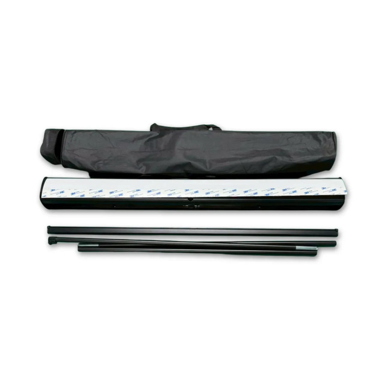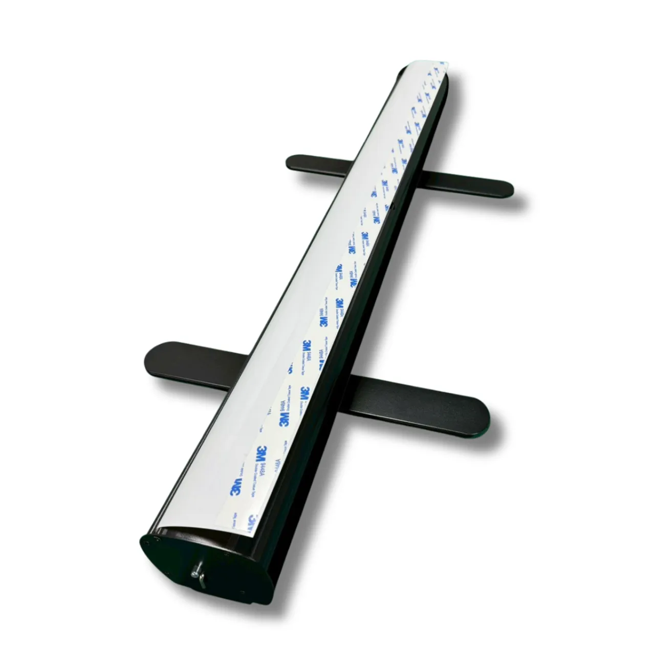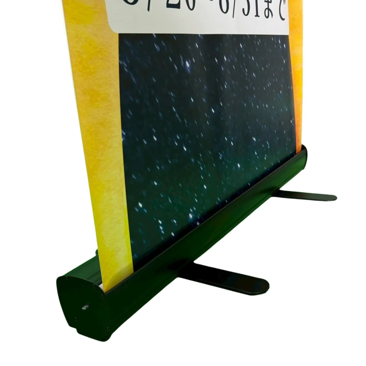 高級感ある黒色スタンドのロールアップバナー!目立ちすぎない洗練感がデザインを引き立てる!