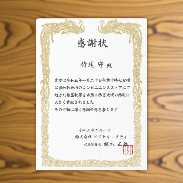 日頃の支援・協力・功労を評した感謝状はビジプリで!