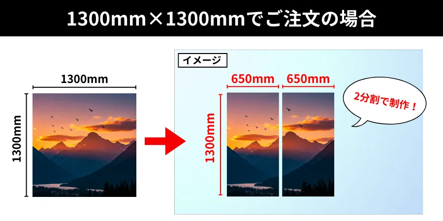 【700mm×1400mmを2枚】で印刷・制作いたします。分割加工は無料です。