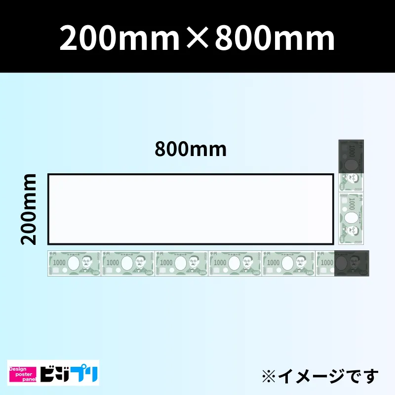 200mm×800mmサイズ(20cm×80cm)の印刷物は、あまり頻繁に使われるサイズではありません。 使用されるケースとしては、窓や壁面に貼るシールやパネルなどが多く、一部のメニュー看板や案内パネルにも使用されます。 ビジプリでは、200mm×800mmの印刷を1枚から即日対応で承っております。まずはお問い合わせください。