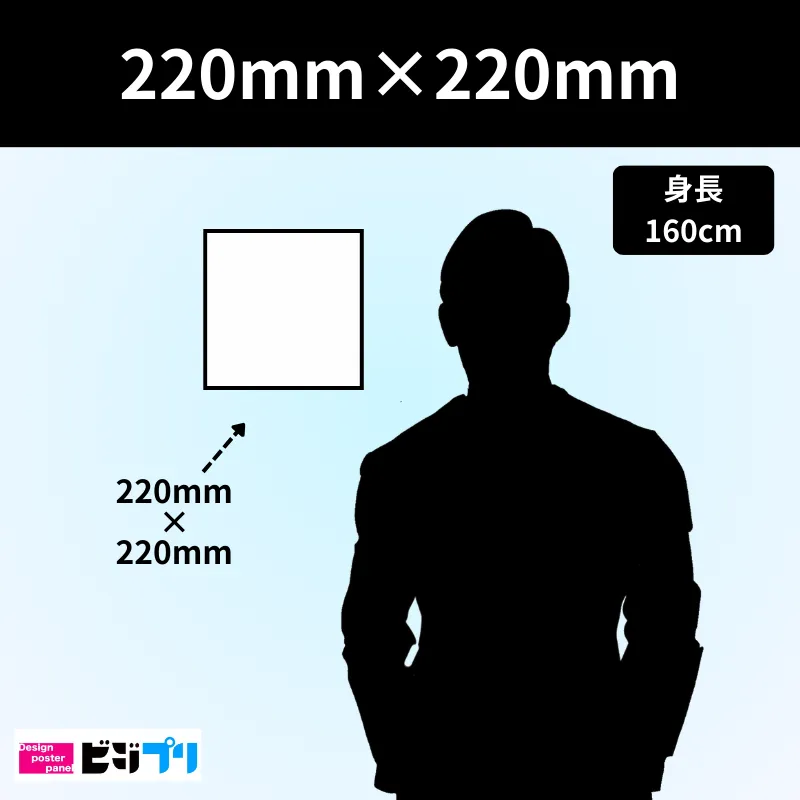 220mm×220mmサイズ(22cm×22cm)で、印刷・ラミネート加工・パネル加工を行います。
