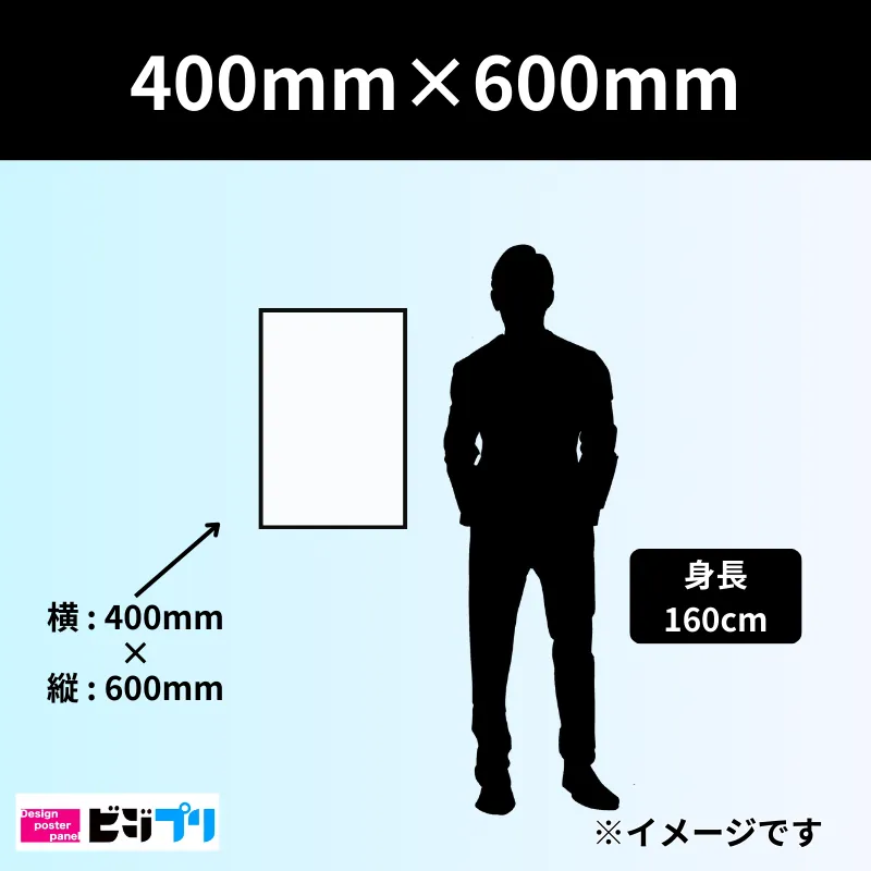 400mm×600mmサイズ(40cm×60cm)の印刷物は、あまり頻繁に使われるサイズではありません。 使用されるケースとしては、窓や壁面に貼るシールやパネルなどが多く、一部のメニュー看板や案内パネルにも使用されます。 ビジプリでは、400mm×600mmの印刷を1枚から即日対応で承っております。まずはお問い合わせください。