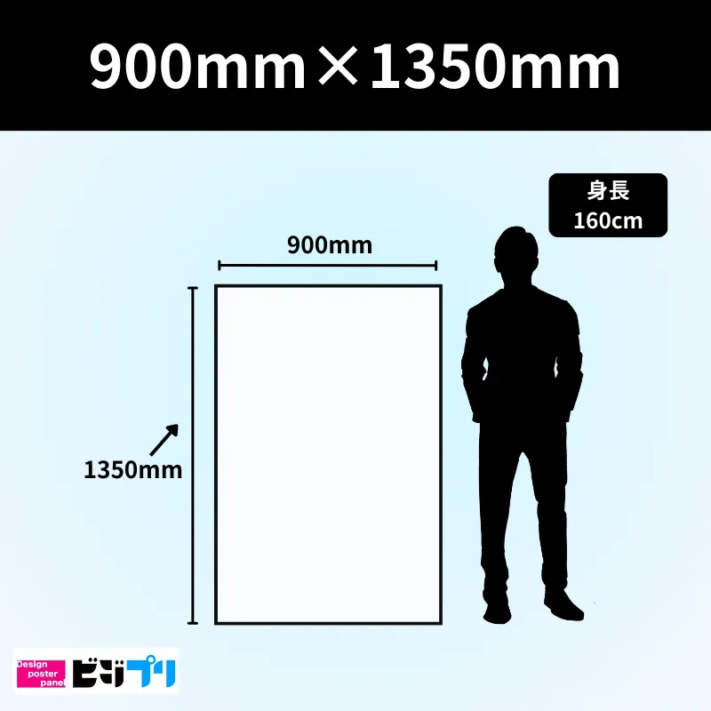900mm×1350mmサイズ(0.9m×1.35m)の印刷物は、あまり頻繁に使われるサイズではありません。 使用されるケースとしては、応援幕や窓貼りシールなどに使用されます。 ビジプリでは、900mm×1350mmの印刷を1枚から即日対応で承っております。まずはお問い合わせください。