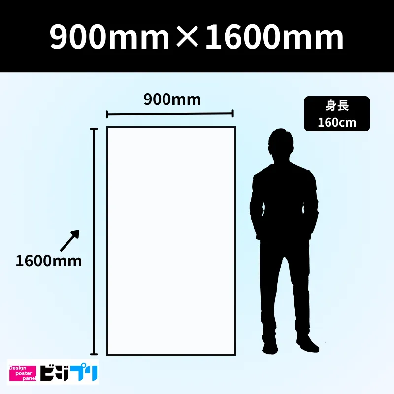 900mm×1600mmサイズ(0.9m×1.6m)の印刷物は、あまり頻繁に使われるサイズではありません。 使用されるケースとしては、応援幕や窓貼りシールなどに使用されます。 ビジプリでは、900mm×1600mmの印刷を1枚から即日対応で承っております。まずはお問い合わせください。