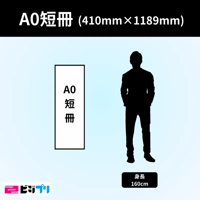 一般的なA0短冊サイズの使用方法としては、サイズは幅420mm×高さ1189mmとなります。少ないスペースである程度の距離からの視認性を求められるシーンや、インパクトを出したい場合にとても有効です。