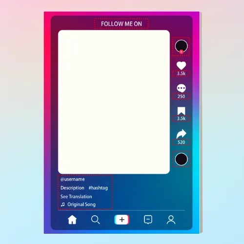 TikTok風SNSパネル用テンプレート(Illustrator形式)をご用意しています。