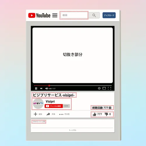 YouTube風の投稿画面(動画ページ)をそのままパネルで再現できる「YouTube風SNSパネル」です。