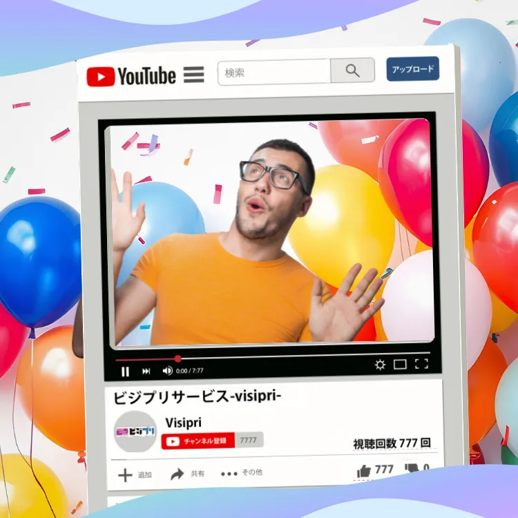 チャンネル名・チャンネルアイコン・動画タイトル・公開日時などの基本要素に加え、「再生回数」「高評価」「チャンネル登録」風のUIまで自由に差し替えることができます。くり抜き加工した画面の中に立って撮影すれば、来場者自身が動画の出演者やゲストとして“動画内のワンシーンに参加したような写真”を作れます。