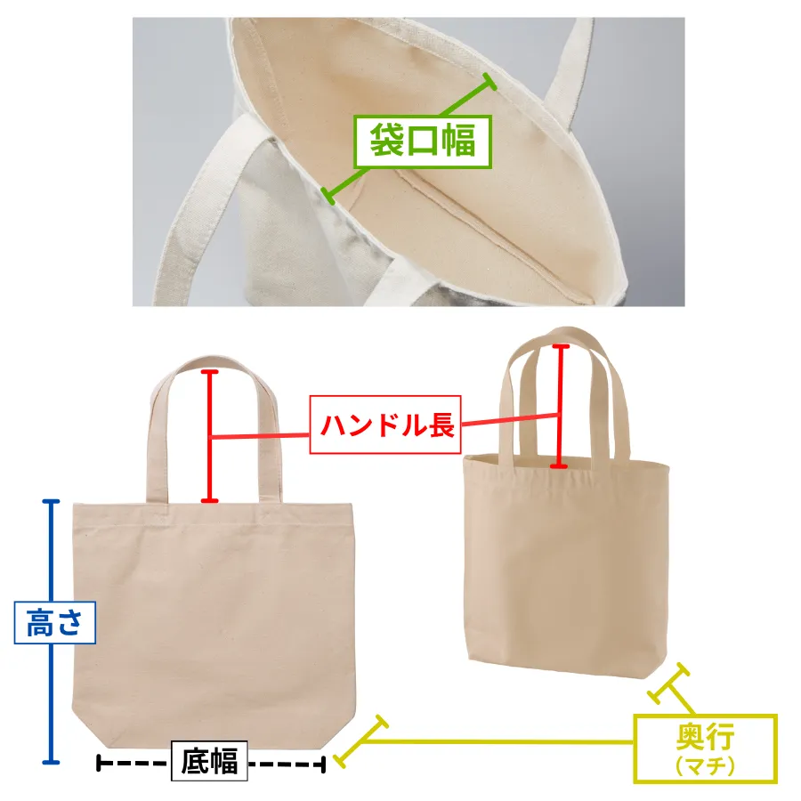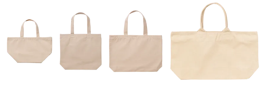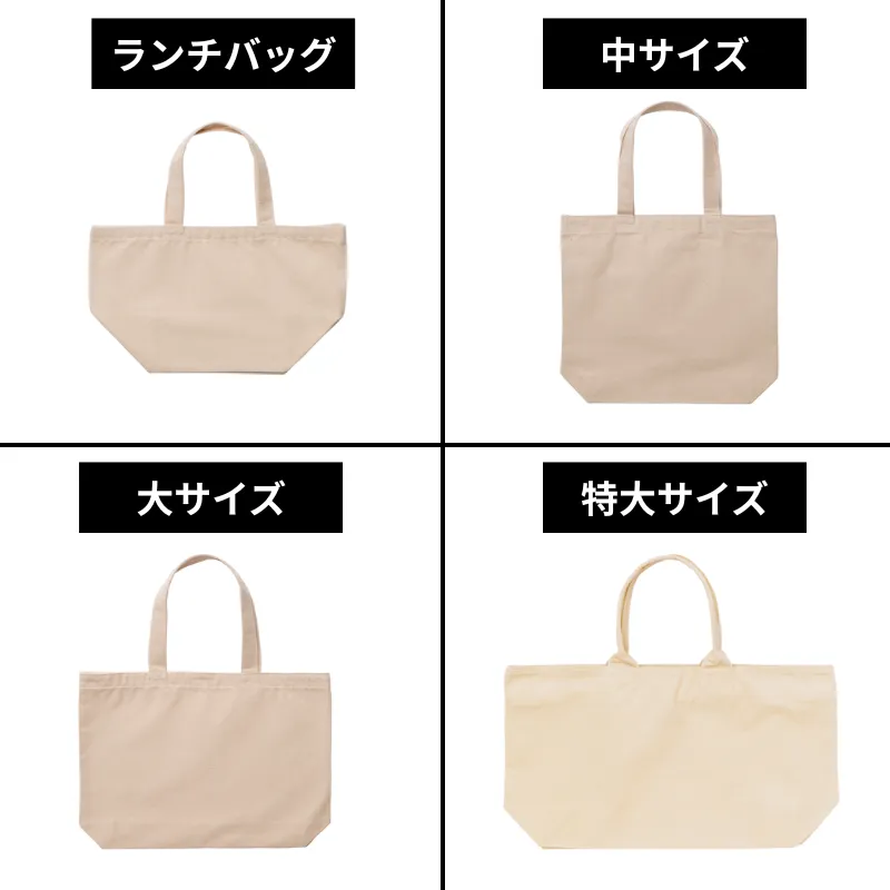 ビジプリのトートバッグは、小さいランチバッグから中・大・特大サイズと選べます。